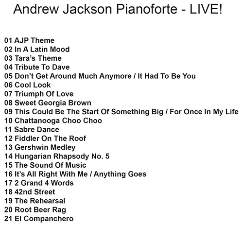 Jack released many solo albums during his musical career. He also released albums with Andy Launer (The Andrew Jackson Pianoforte) and vocalist JoEllen Harris Stearns.